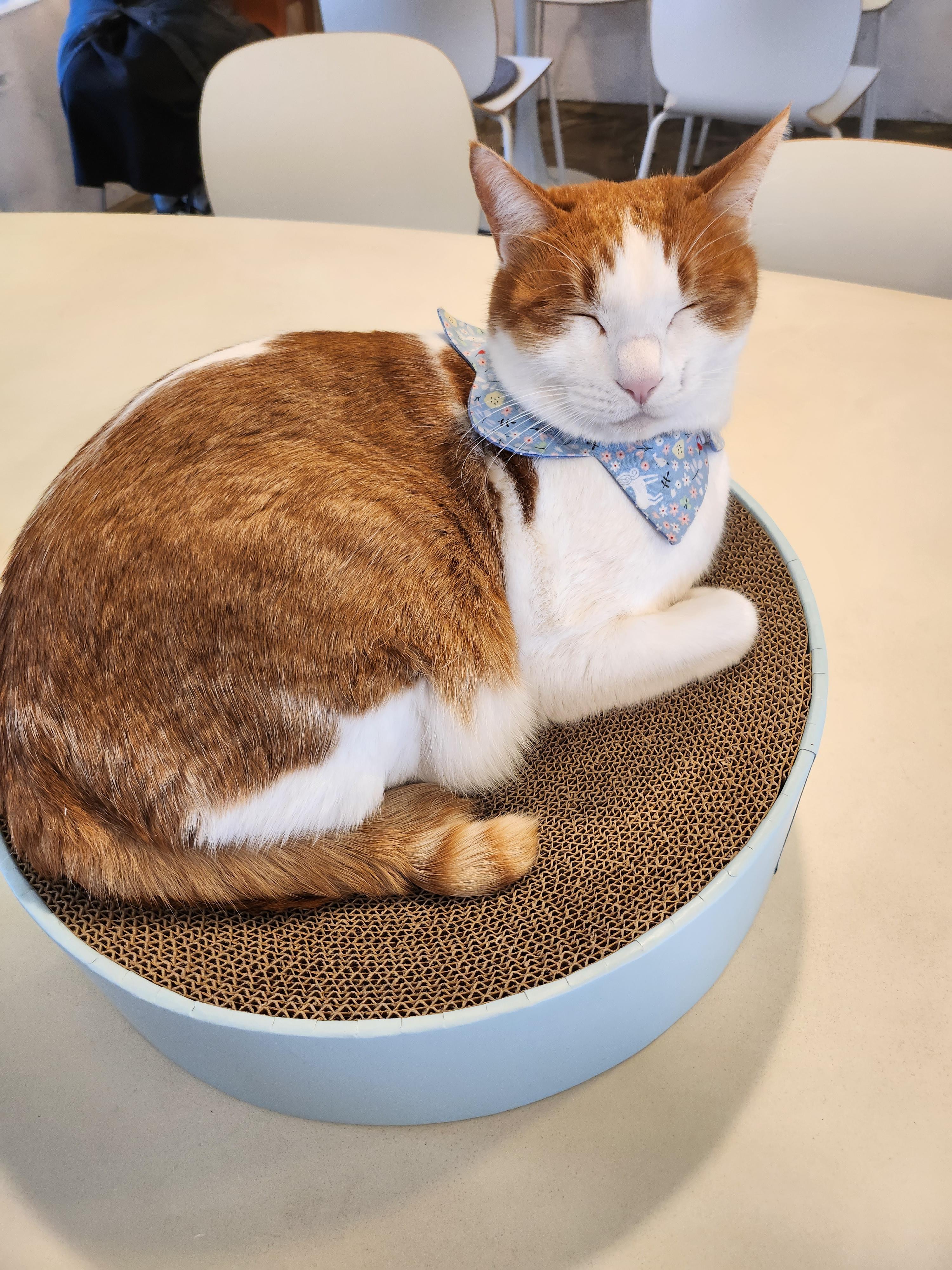 출근하자마자 이 스크래쳐에 발톱을 갈고 바로 단잠에 빠진다. 쉴때도 잘때도 간식을 먹을때도 이 스크래쳐 위에서 다 해결한다.