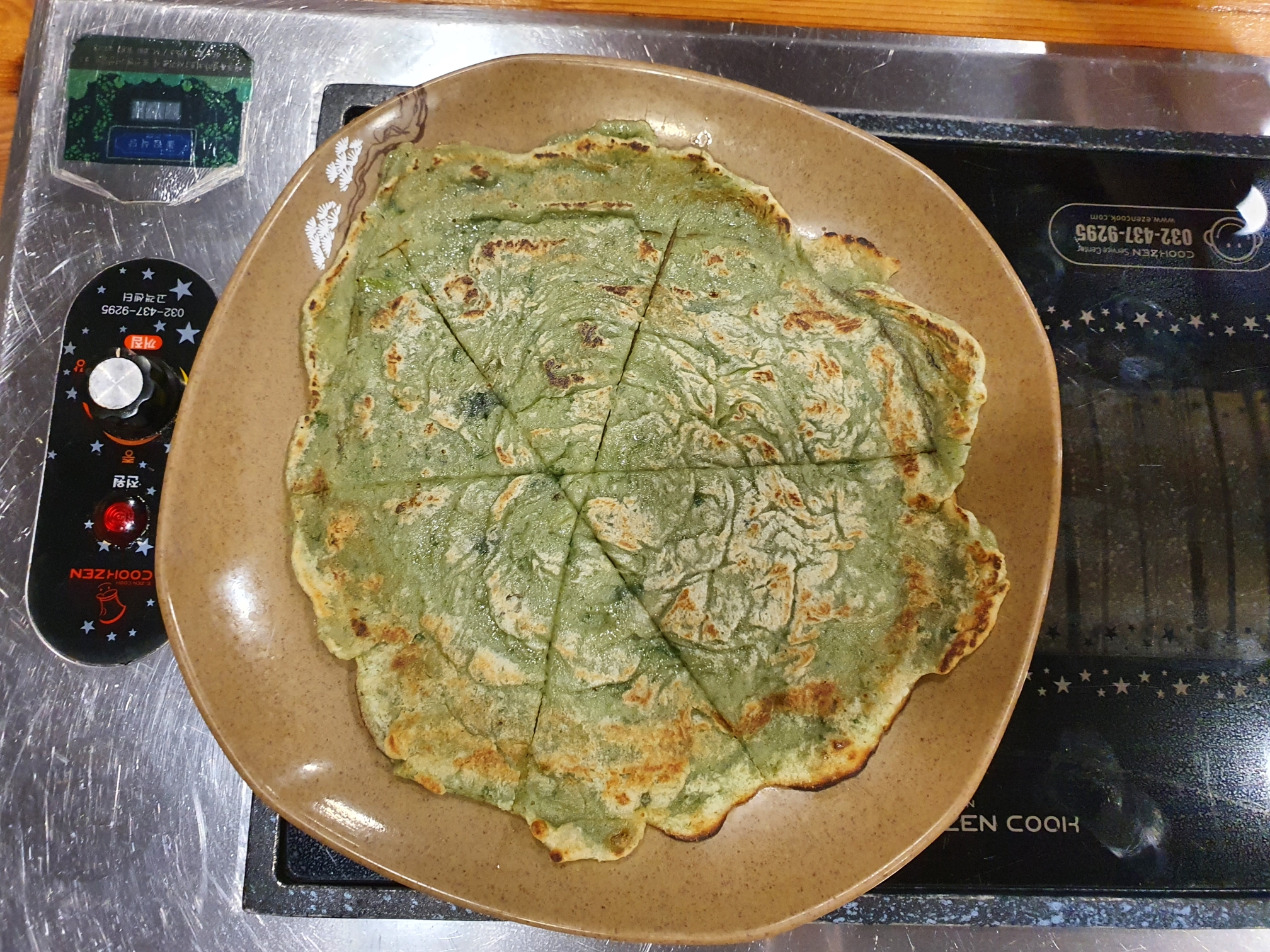 쑥을 갈아만든 향긋한 전이 나오고