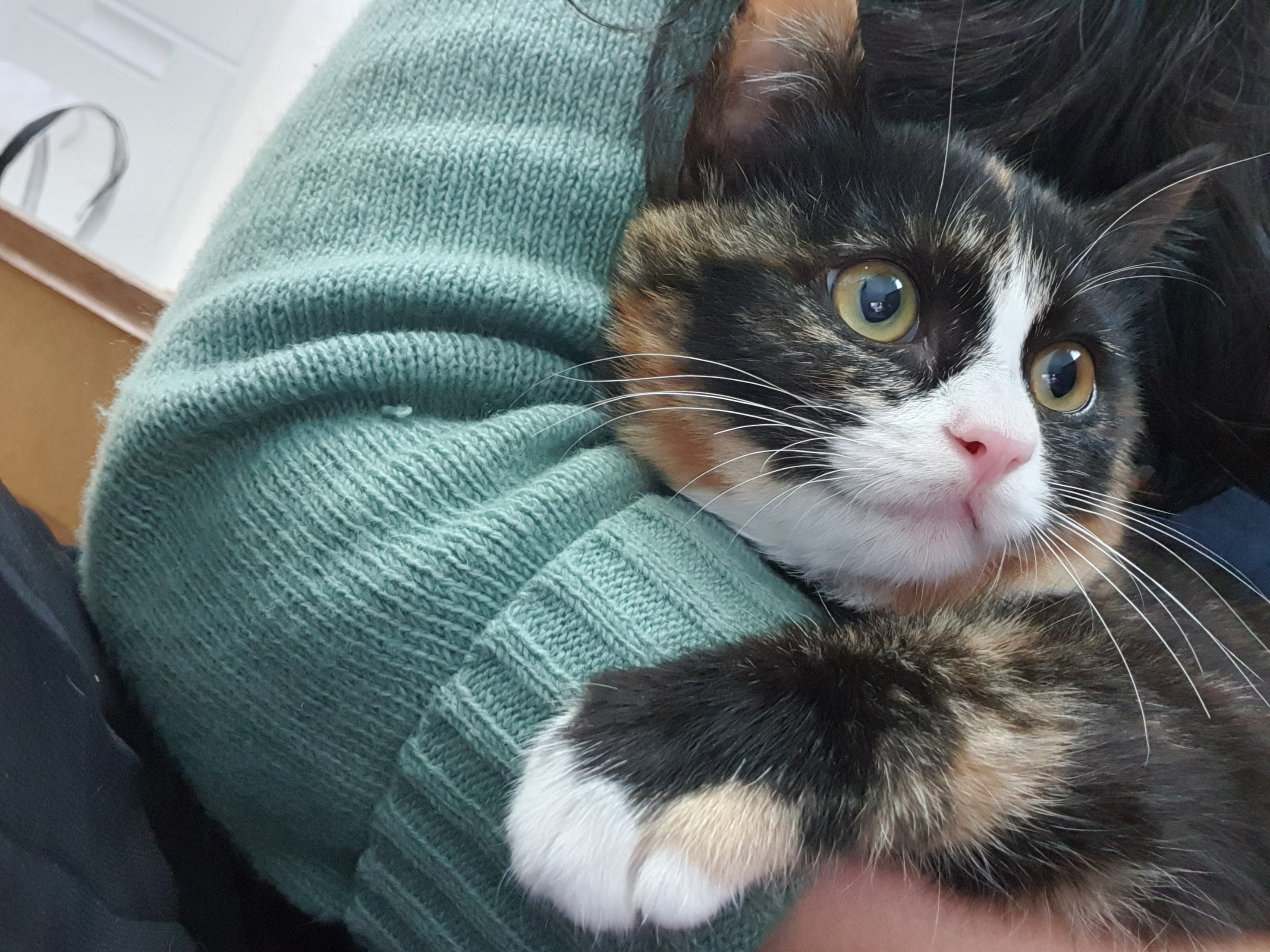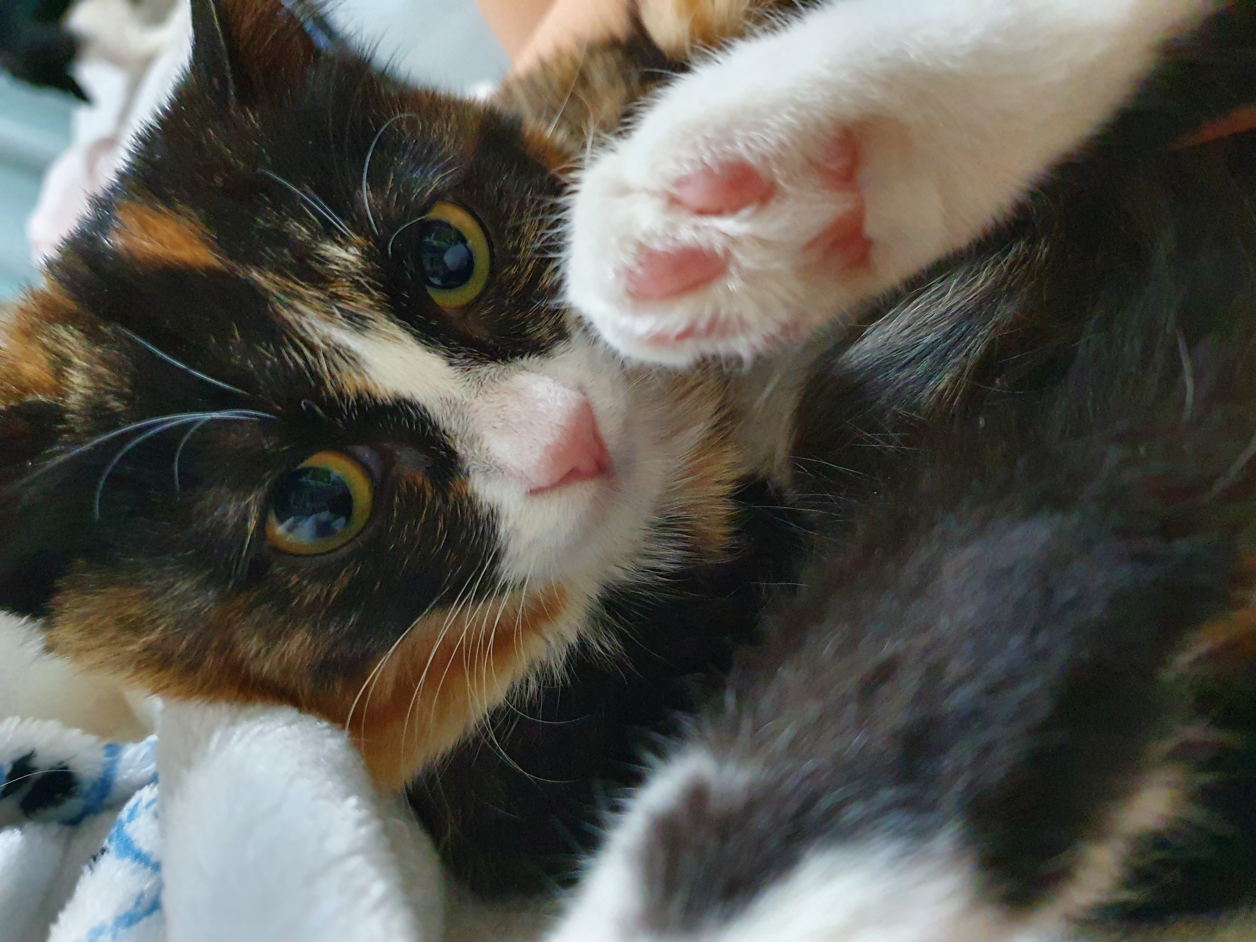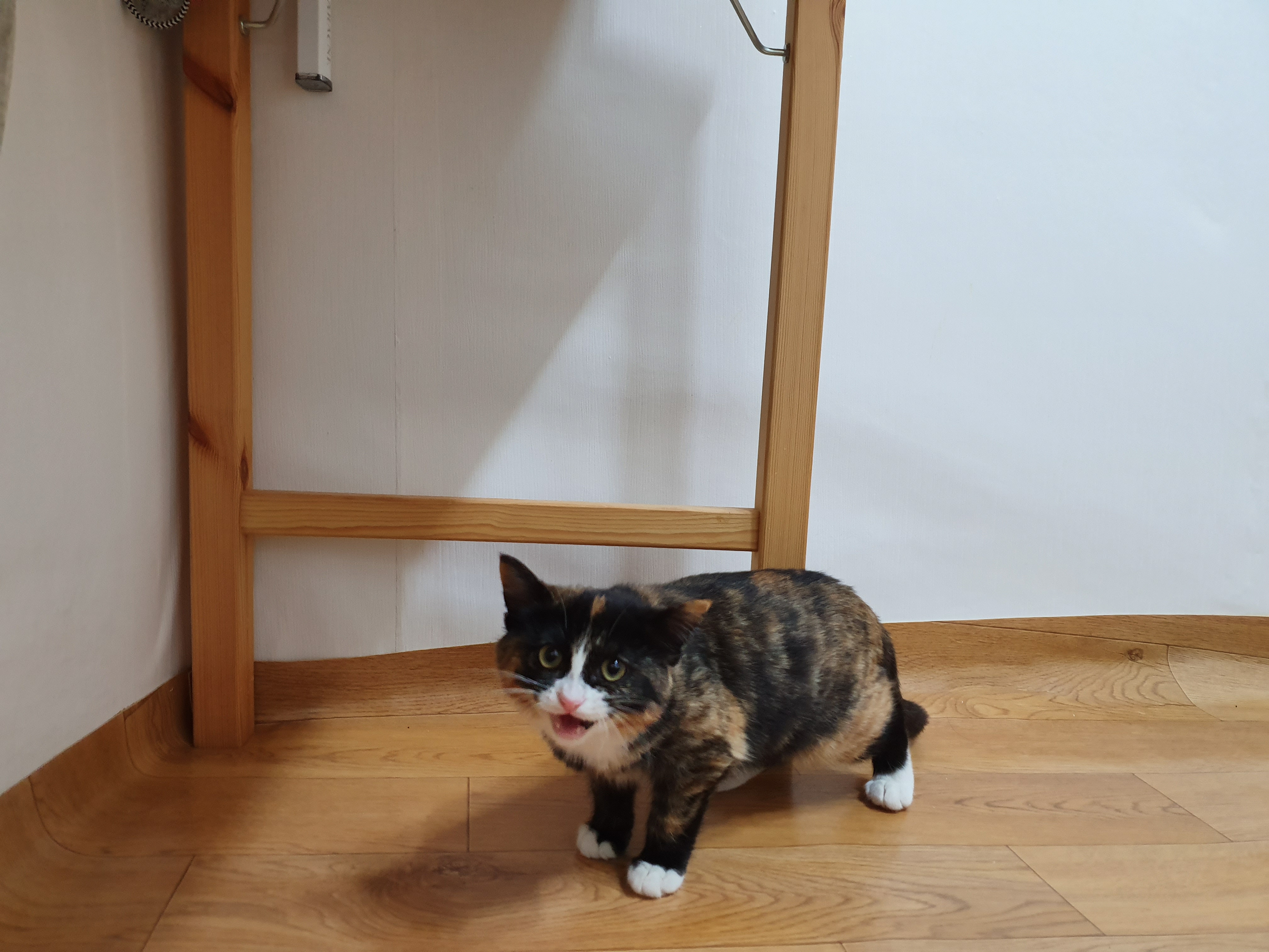털이 조금 긴 장모 삼색이이다