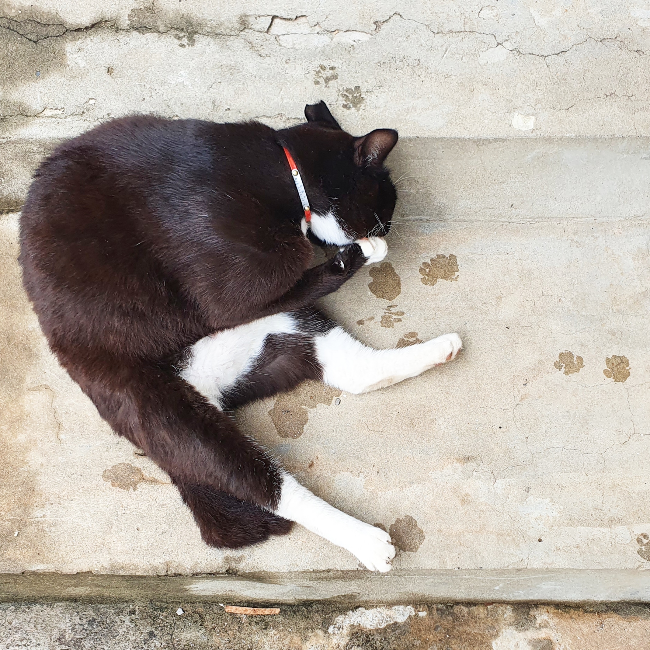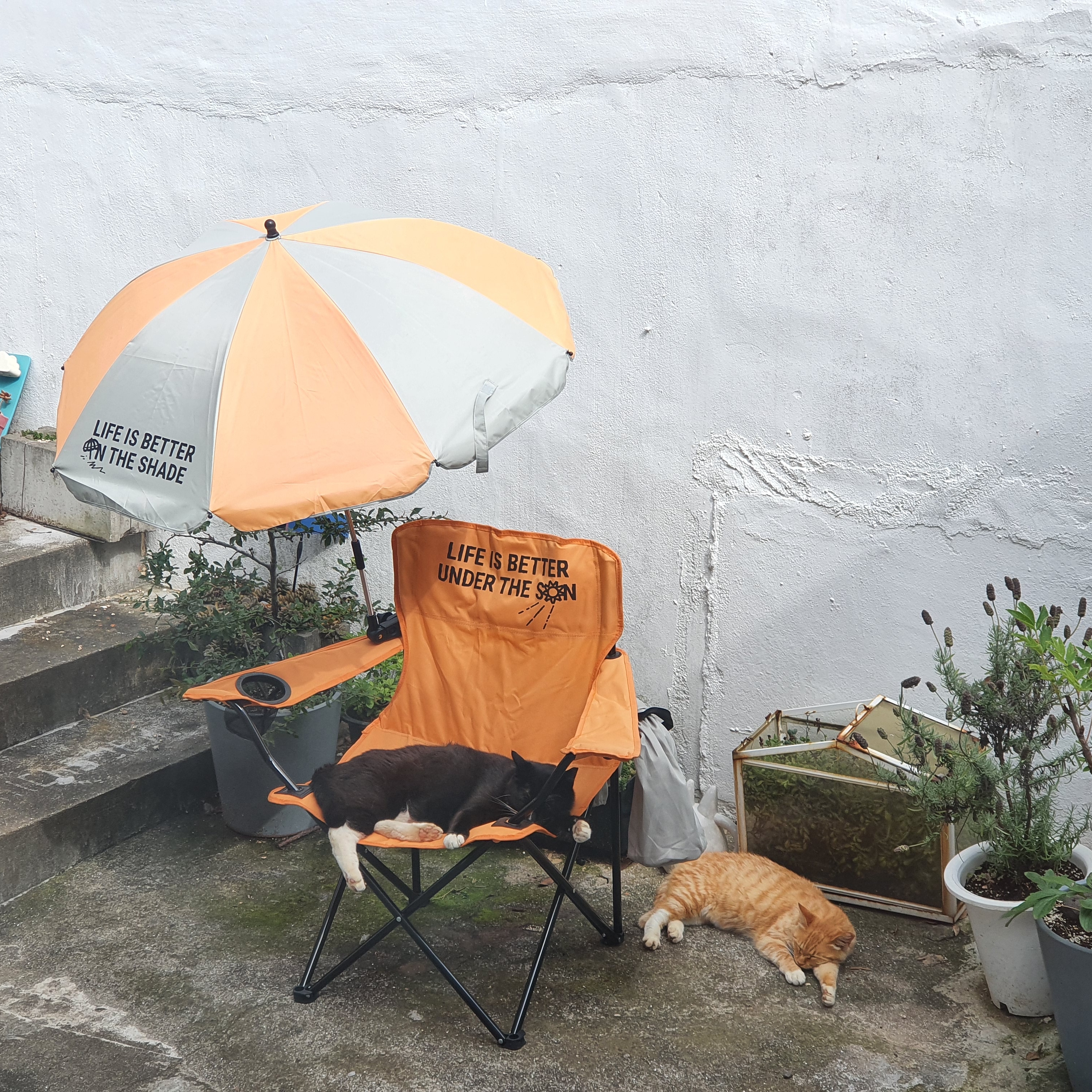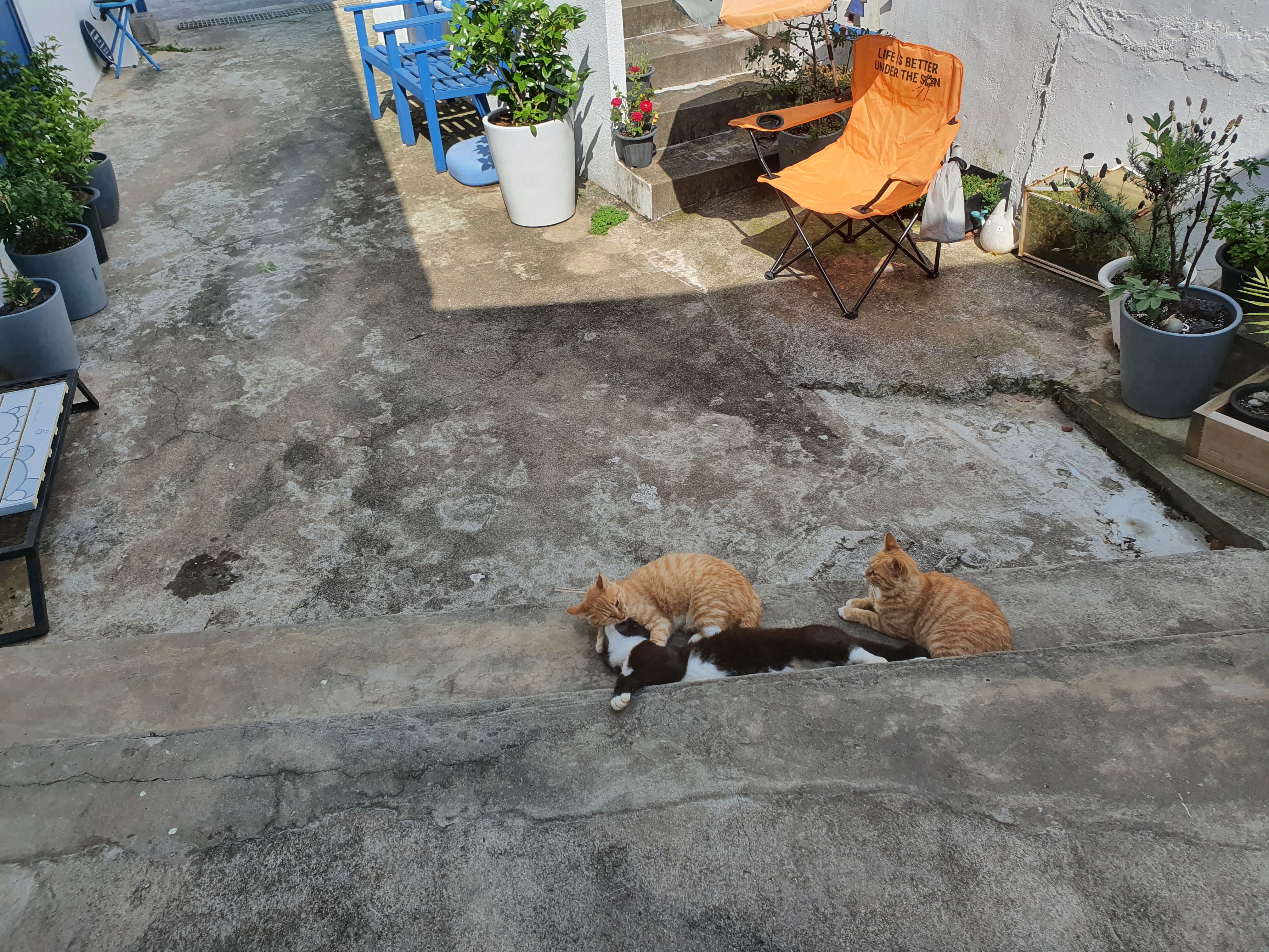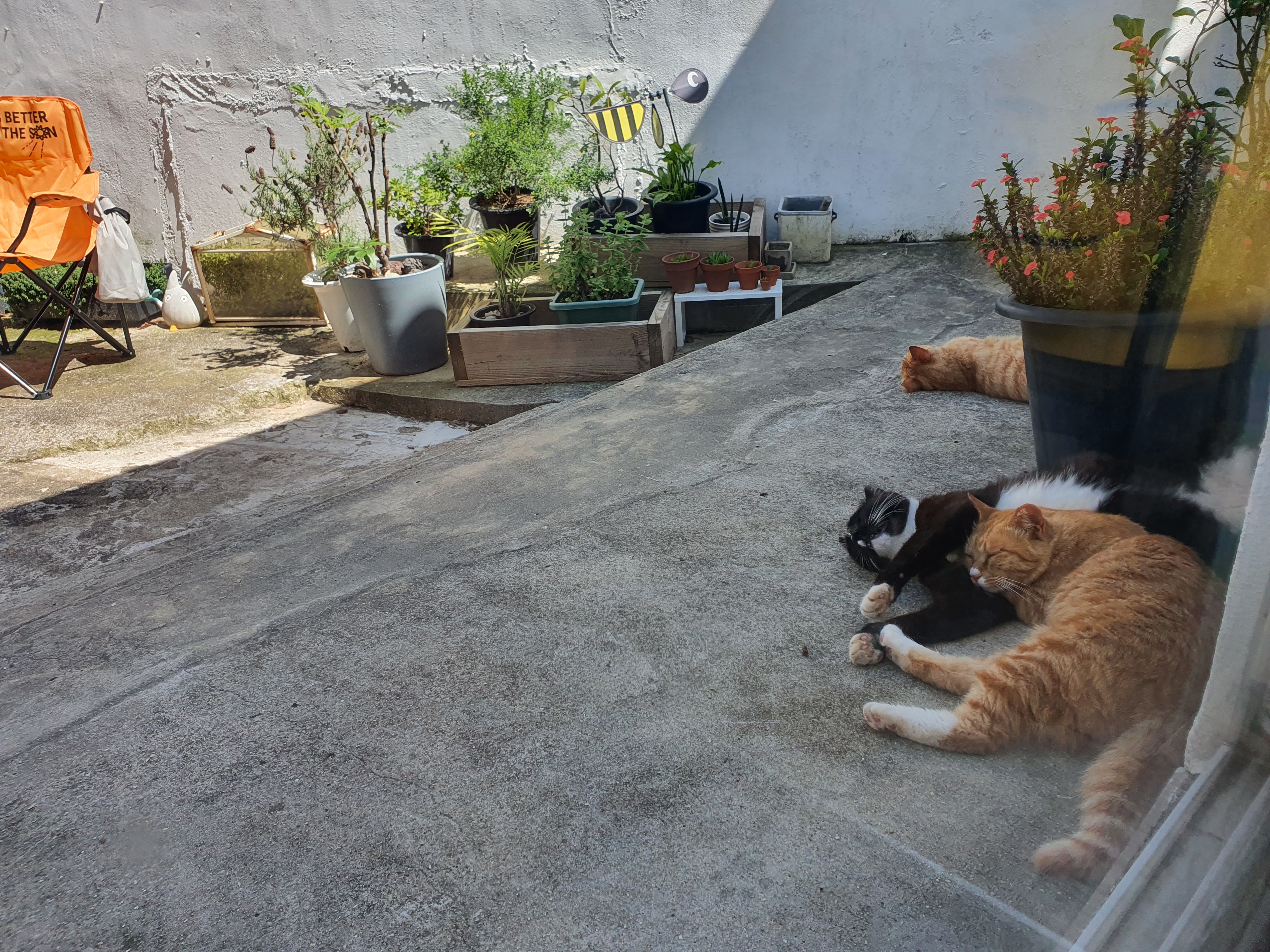 마당에 아무렇게나 널부러져 잠이든 고양이들