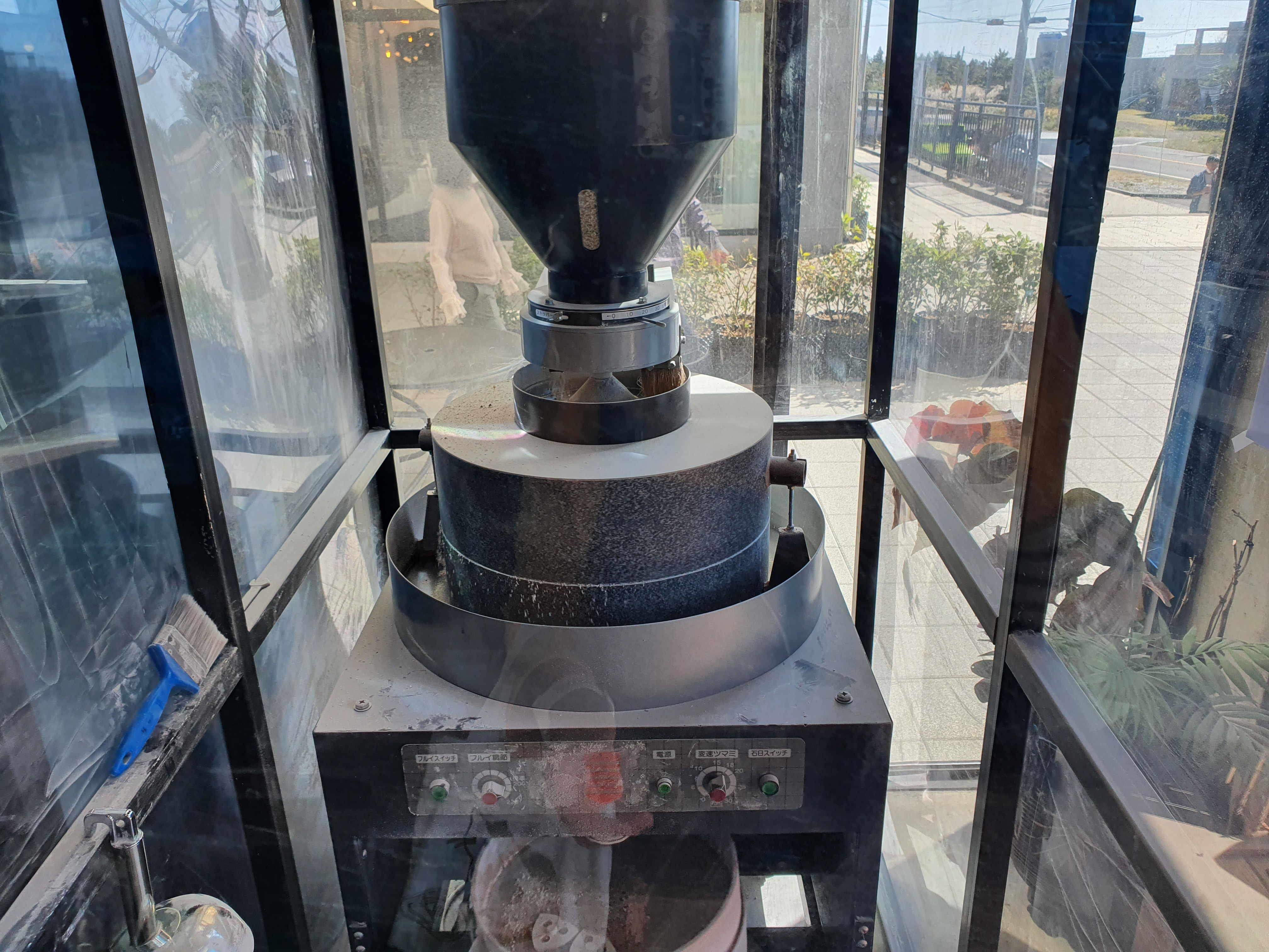 메밀을 빻는 기계가 돌아가고 있었다